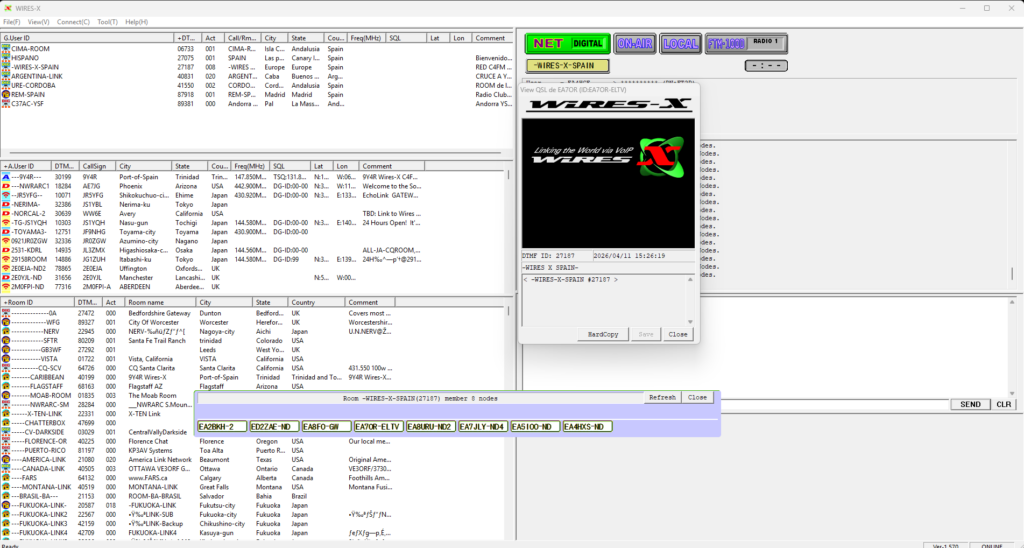 En el NODO de El Taloviu sí he puesto la versión antigua, porque me di cuenta que en la antigua están los NODOS habituales de siempre y en la nueva NO estaban los mismos, por lo que no podía poner el NODO en la ROOM -WIRES-X-SPAIN 27187 que es donde habitualmente está todo el tráfico y los enlaces de España, así como ROOMs conocidas como ARGENTINA-LINK muy frecuentada por usuarios españoles.